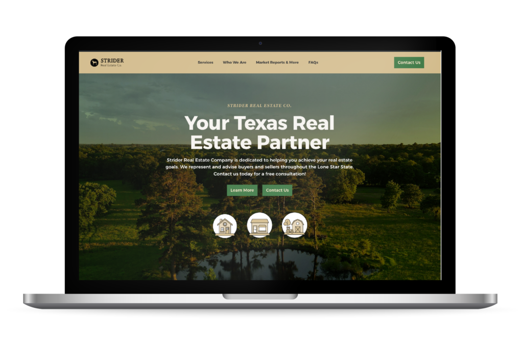 2020-Present Strider Real Estate Co. Developed a visual identity and logo that effectively represented the company’s image, values, and services. Crafted to establish a strong and memorable brand presence in the real estate industry. Website